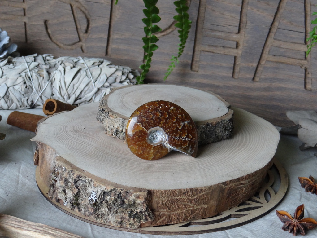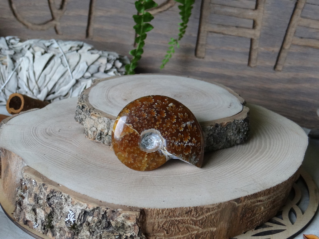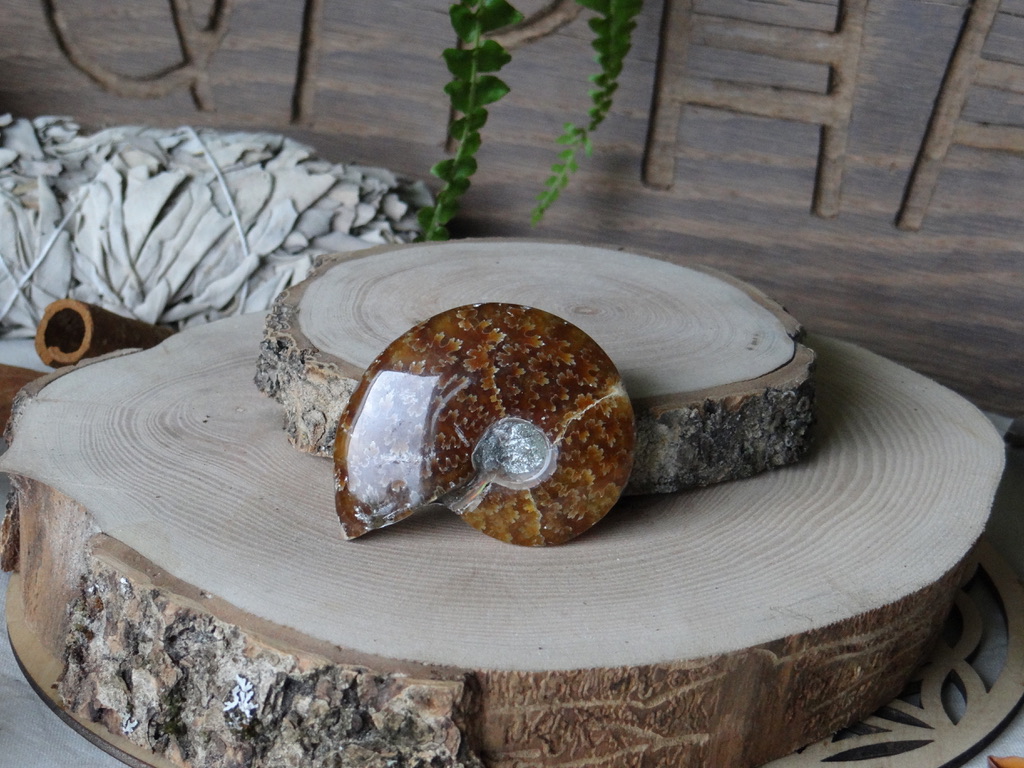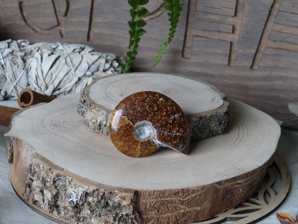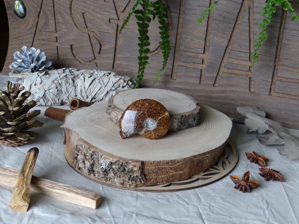 L’Ammonite est une pierre très puissante. Elle permet de travailler sur le passé si on la tourne vers la gauche, et sur le futur si on la tourne vers la droite.
