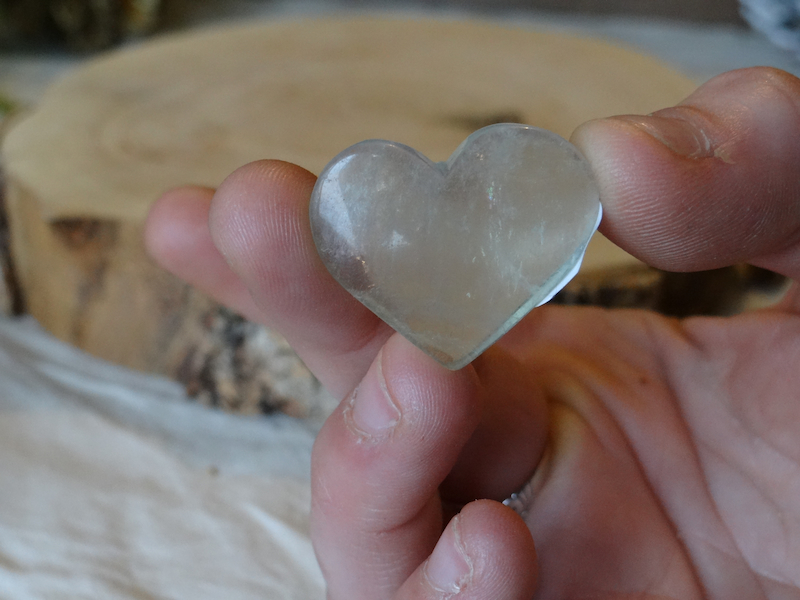 Il s’agit d’une Fluorite en forme de cœur. Elle a été taillée par l’Homme pour révéler toute sa beauté. Ce minéraux est en provenance directe de Madagascar.