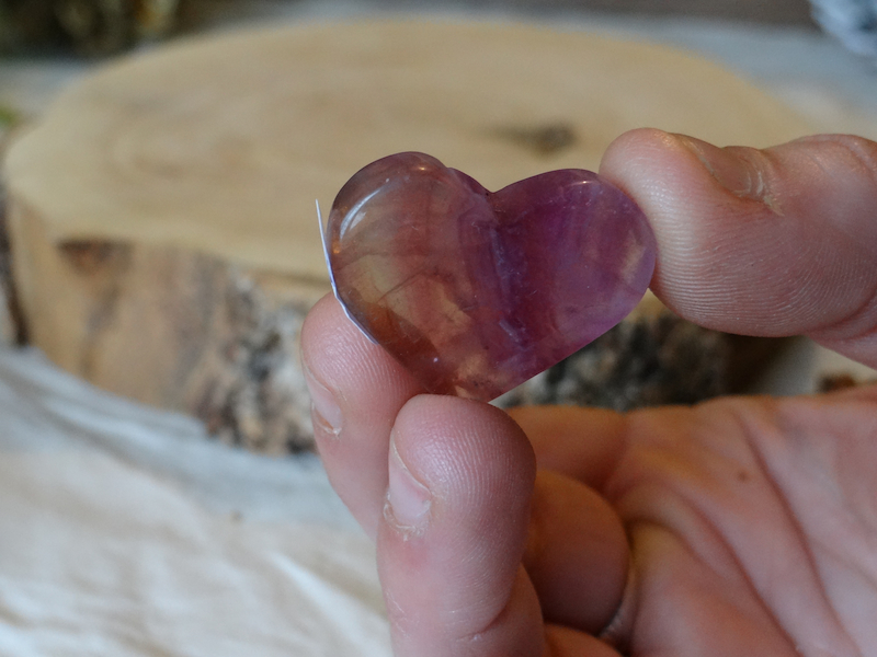 Il s’agit d’une Fluorite en forme de cœur. Elle a été taillée par l’Homme pour révéler toute sa beauté. Ce minéraux est en provenance directe de Madagascar.