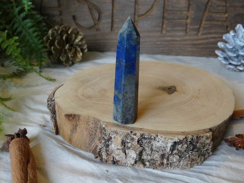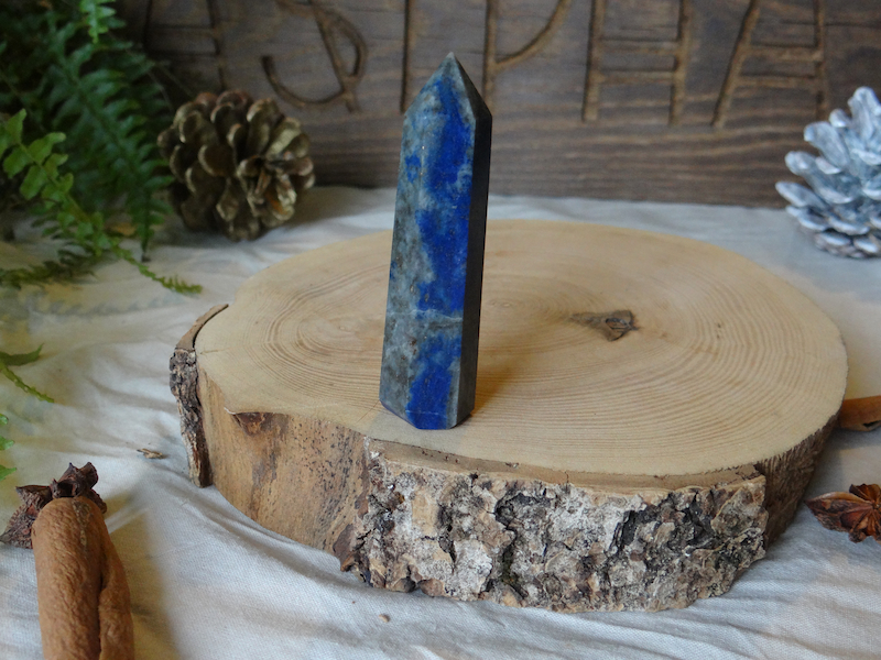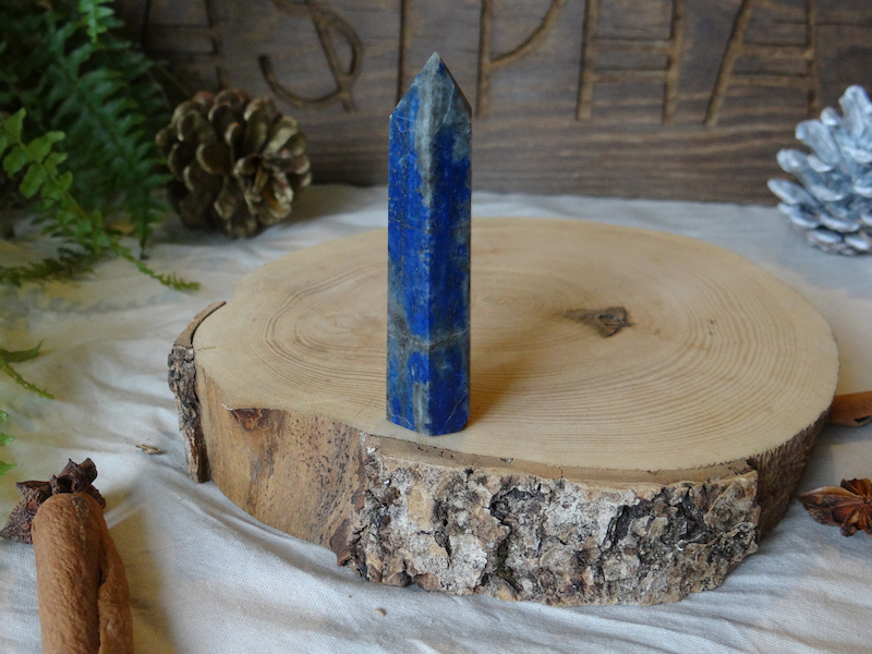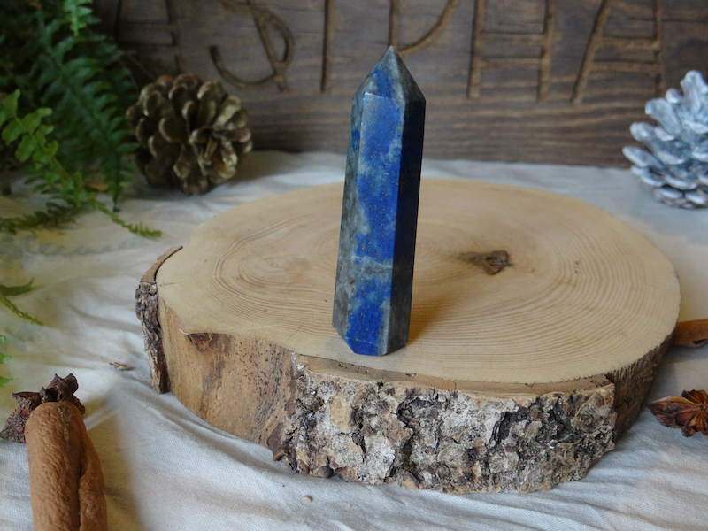 Il s’agit d’un Lapis Lazuli en forme de pointe. Elle a été taillée par l’Homme pour révéler toute sa beauté. Ce minéraux est en provenance directe du Pakistan.