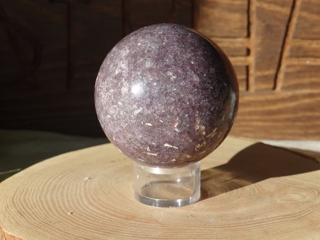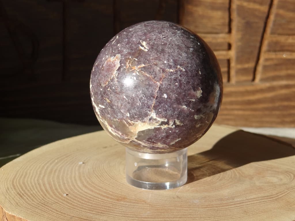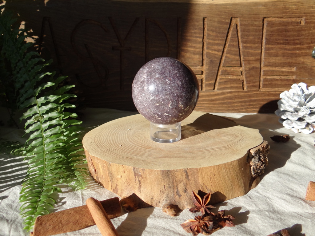 Il s’agit d’une Lépidolite en provenance de Madagascar, taillée en forme de sphère.
