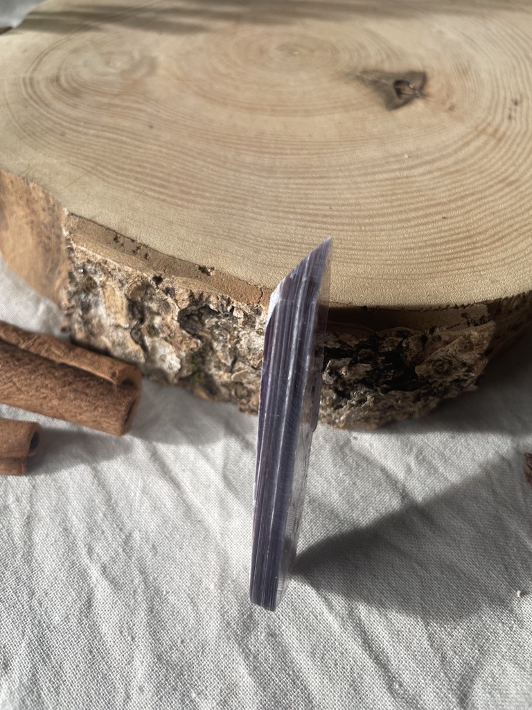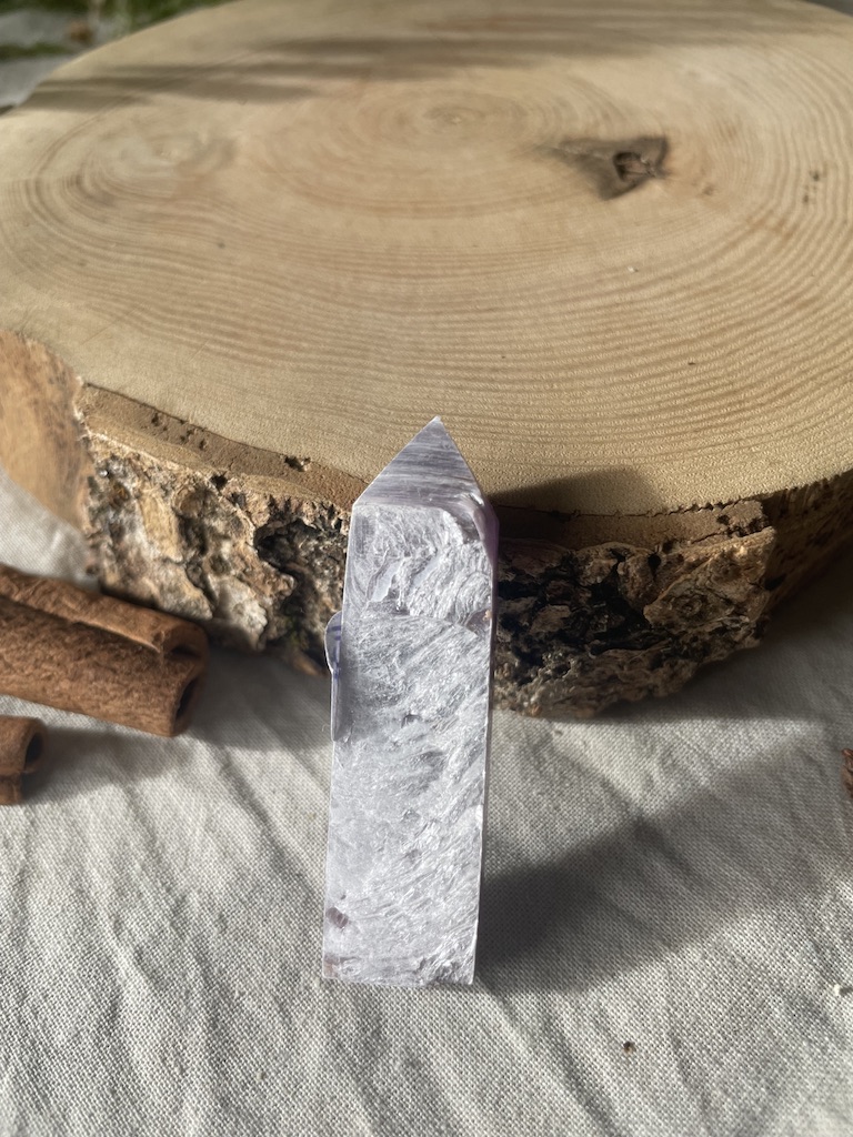 Il s’agit d’une Lépidolite en provenance du Portugal, taillée en forme de pointe.