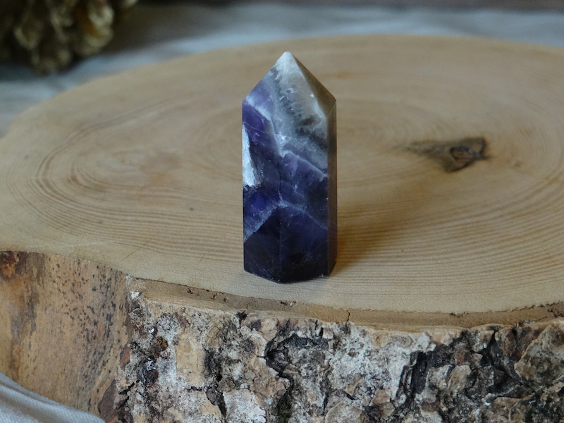 Il s’agit d’une Améthyste en provenance du Brésil. Elle a été taillée en forme de pointe.