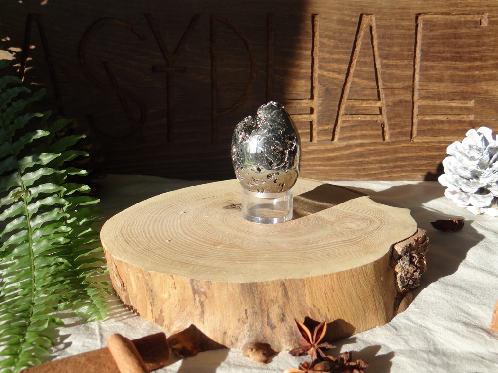 Il s’agit d’une Pyrite en provenance de France, taille en forme d’œuf.