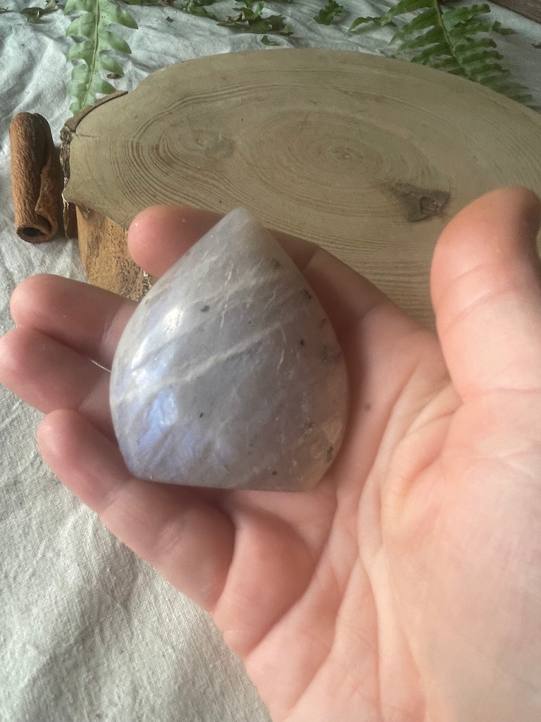 La Pierre de Lune est une des pierres très reliée à la féminité: quelque soit le genre, elle permet de se relier à son côté Yin.