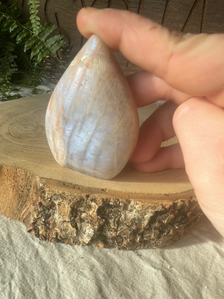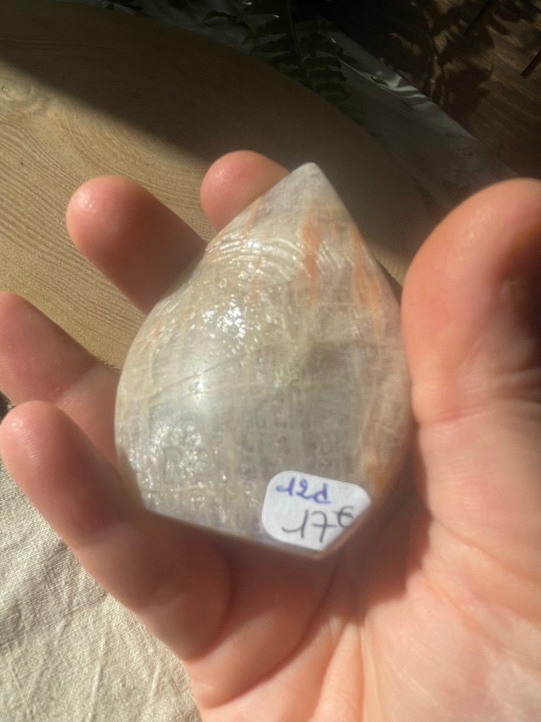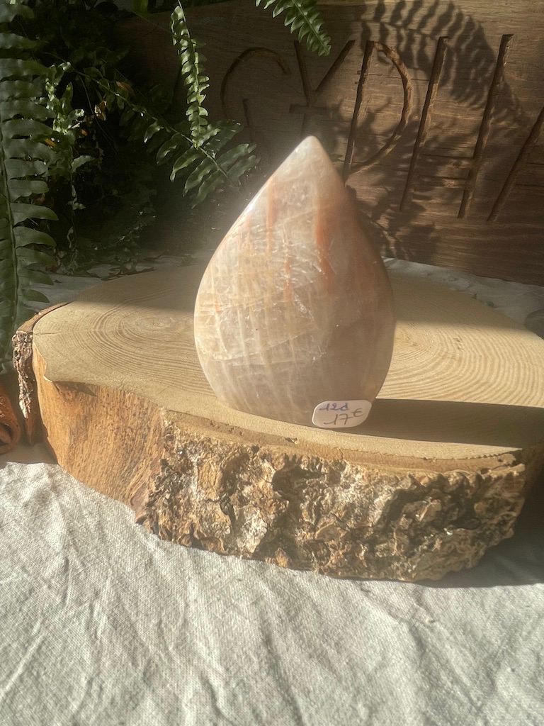 Il s’agit d’une Pierre de Lune en forme de portail, elle a été taillée par l’Homme pour révéler toute sa beauté. Ce minéraux est en provenance directe de Russie.
