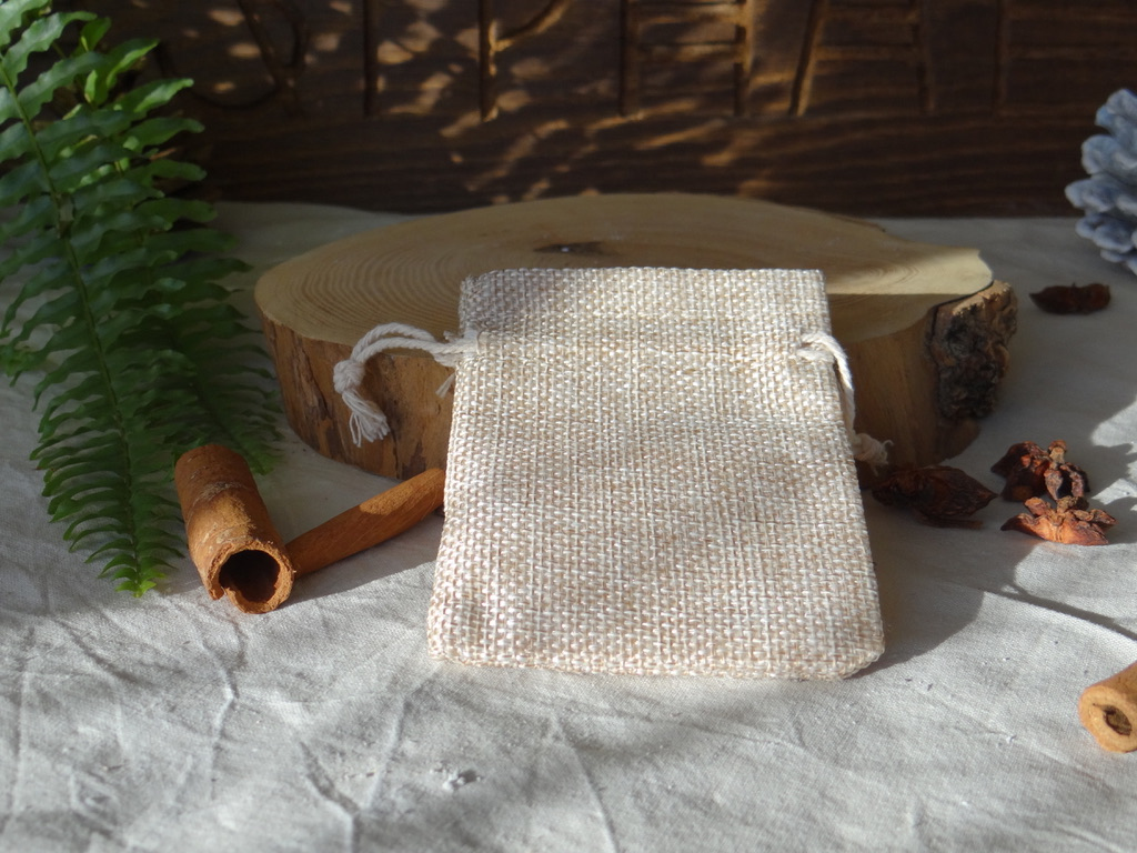 Petit pochon pour emballé vos bijoux pour offrir en toile de jute.